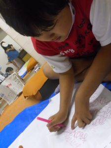 September 2, 2021 6:33 pm | 語学lesson | eggstaff | 0久しぶりのlittle egg。 今日は語学lesson!!! 準備の時から私も子ども達もワクワク☆ 久しぶりだけど、「文字を追う」という事を覚えてくれてて、嬉しい瞬間(*^_^*) 大きな紙に「文字」を書いてみよう☆ これからも、楽しく積み重ねていこ~~~!!! *写真は保護者の方の許可を得ています。 *eggに関する事でご質問・ご要望等がありましたら、092-834-5567までお気軽にご連絡下さい。 中島