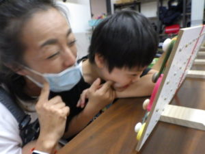 最初はどうしていいか分からなかったA君も、他の子がしている所をみて、できるようになってきます☆