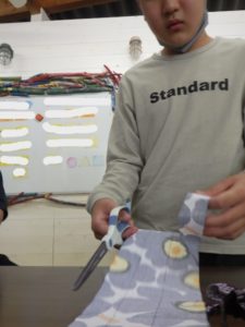 今日のlittleeggはハサミで布を切ってみよう!!!