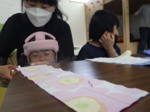 ハサミの使い方がままならい子たちもスタッフと一緒にチャレンジ!!!