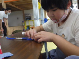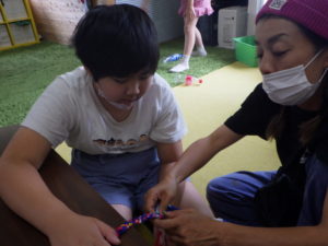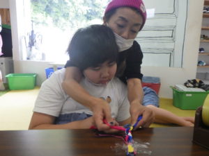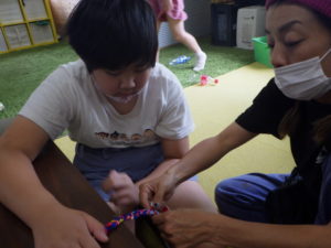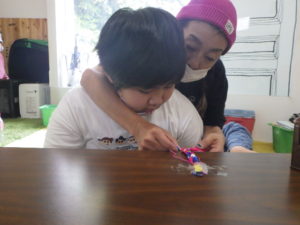 May 19, 2022 7:04 pm | 指先トレーニング | eggstaff | 0今日のlittleeggは前回の続き! 今回は‟編む”を中心に!(^^)! まずは、布にアイロンかけ☆ 上手!上手!! 次は‟編む” どんどん、編む順番が分かるようになってきました! 「Nもやるやる~~~♬」 遠くからみていたP君も、‟やってみようかな”の気分(*^▽^*) いい感じ(⋈◍>◡<◍)。✧♡ *写真は保護者の方の許可を得ています。 *eggに関する事でご質問・ご要望等がありましたら、092-834-5567までお気軽にご連絡下さい。 中島