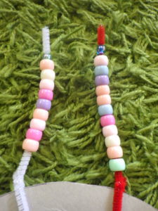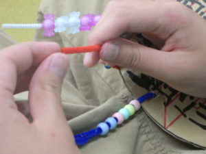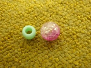 「大きいビーズが落ちないように、小さいビーズで止めてみたよ!」